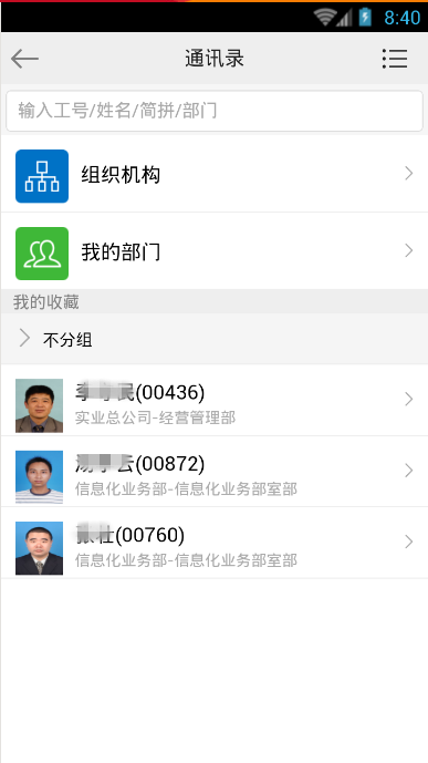 提供通讯录功能,将企业员工信息集成到移动端,方便员工沟通交流。
