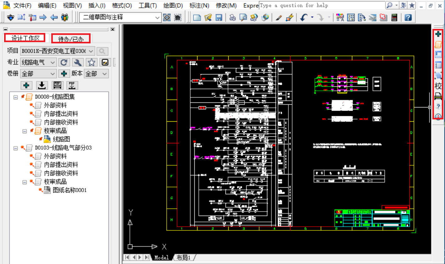 通过对设计要素的整合,将设计任务的所有操作(包括图纸校审,资料查看,流程发送等)集中在辅助设计工具中,减少频繁切换管理系统及设计工具的困扰,缩短查找资料、人员的耗时,简化设计人员的操作,提高图纸设计的效率。