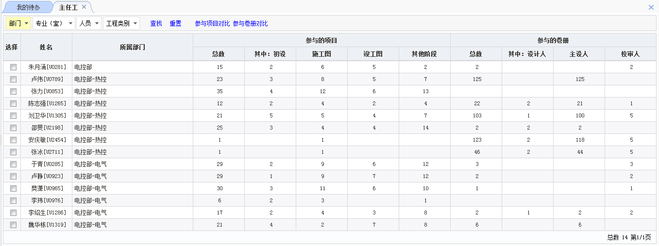 项目质量管理:展示项目的整体质量情况,各专业及人员差错率。通过对专业、人员分类统计,找出存在较大、较多质量问题的区域采取重点措施。